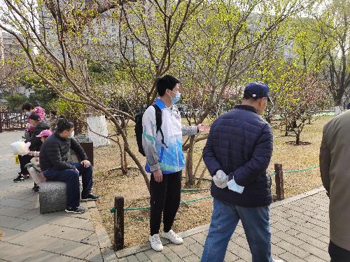 活动开始前,京徽志愿服务总队的负责人为我们仔细讲解了志愿服务的内容:积极引导游客文明游园,对游园中的不文明行为进行劝导,维护公共场所环境的秩序以及对园区垃圾分类进行指引,同时,叮嘱我们做好个人防控以及自身安全的保障。