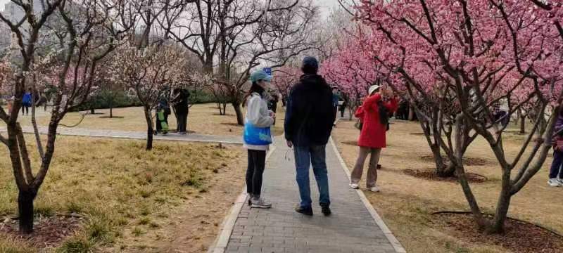 活动结束后,大家畅谈内心的想法;“有两位老人上前同我搭话,表示从很远的地方来参观,能否帮他们拍照合影,我欣然同意。老人真挚的提出感谢我们志愿者,向我竖起大拇指,我心中的自豪之感油然而生。有很多游客询问我梅花和桃花的区别,能够帮助到他人,我自己的心情也感到愉悦。三个半小时的志愿活动虽然辛苦,但是在看到游客们的笑容、对志愿活动的支持后,我的疲惫感一扫而空。这次志愿活动非常有意义,不仅让我意识到保护环境的重要性,更让我有对于能够参与到贡献社会的工作的自豪、荣幸之感。”入党申请人邬卡佳同学有感而发。