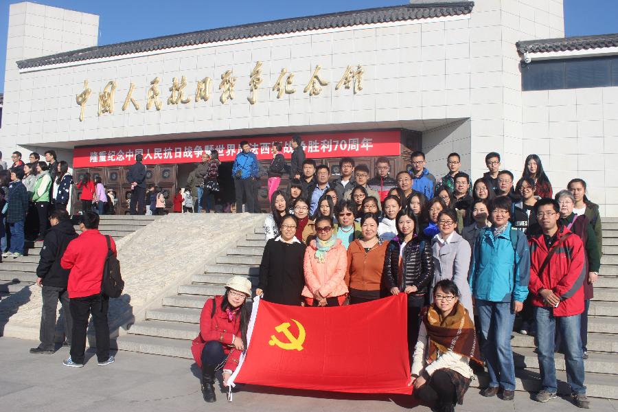 10月31日,秋高气爽,万里无云,时值纪念抗战胜利70周年之际,草莓视频 分工会与学院党委一同组织教师及学生党支部前往参观中国人民抗日战争纪念馆。在院长姚东旭、党委书记李红霞、党委副书记王珂的带领下,在分工会主席陈蕾的组织下,学院教师18名和学生党员21名参加了此次活动。