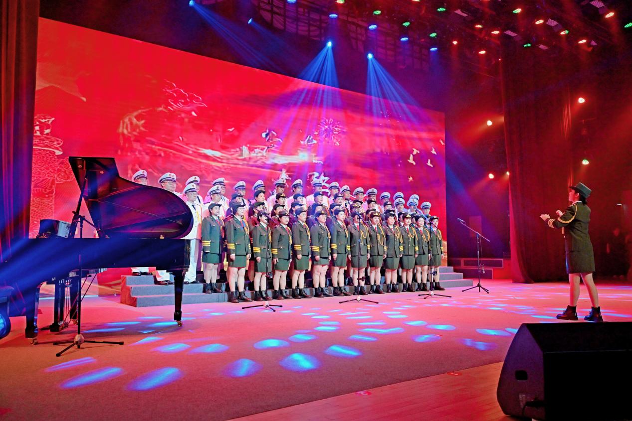 决赛现场,全体教师身着笔挺军礼服,肩章绶带辉映如炬,将“遇到困难披荆斩棘”的豪迈基因、“敢打必胜”的战斗作风融入血脉。钢琴前奏响起,刘颖老师、刘唯贤老师昂首出列,以金石之声朗诵原创词章。随即,李蕾老师振臂引吭,合唱团以排山倒海之势高歌“向前进!向前进!”,戎装阵列随节奏铿锵踏步,展现“劳动托起中国梦”和“投身教育事业新征程”的壮阔图景。教职工们通过军礼服与红歌的融合演绎,从排练场挥洒的汗水到舞台上的荣光时刻,我们坚信当红色信仰融入师者之歌,历史的回响必将点燃奋进新征程的磅礴力量!