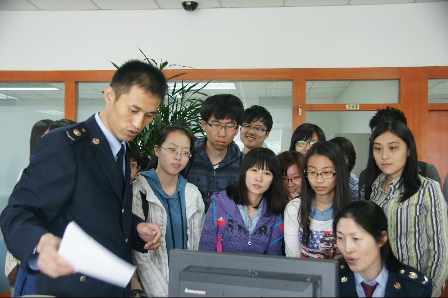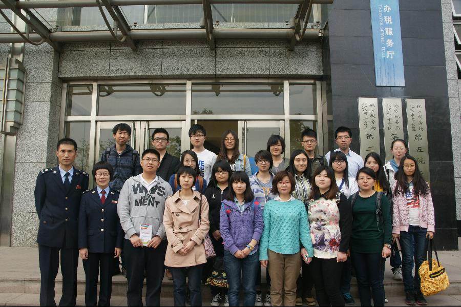 4月16日,草莓视频 2011级与2012级的部分同学和党总支副书记王珂老师前往北京市丰台区地方税务局第二税务所,与丰台地方税务局共同开展“便民办税春风行动之大学生纳税服务体验日”活动。丰台地方税务局副局长王冠凯,第二税务所所长周凯,副所长杨宝华,丰台地方税务局办公室主任王瑞海,副主任高健一同出席并参加活动。