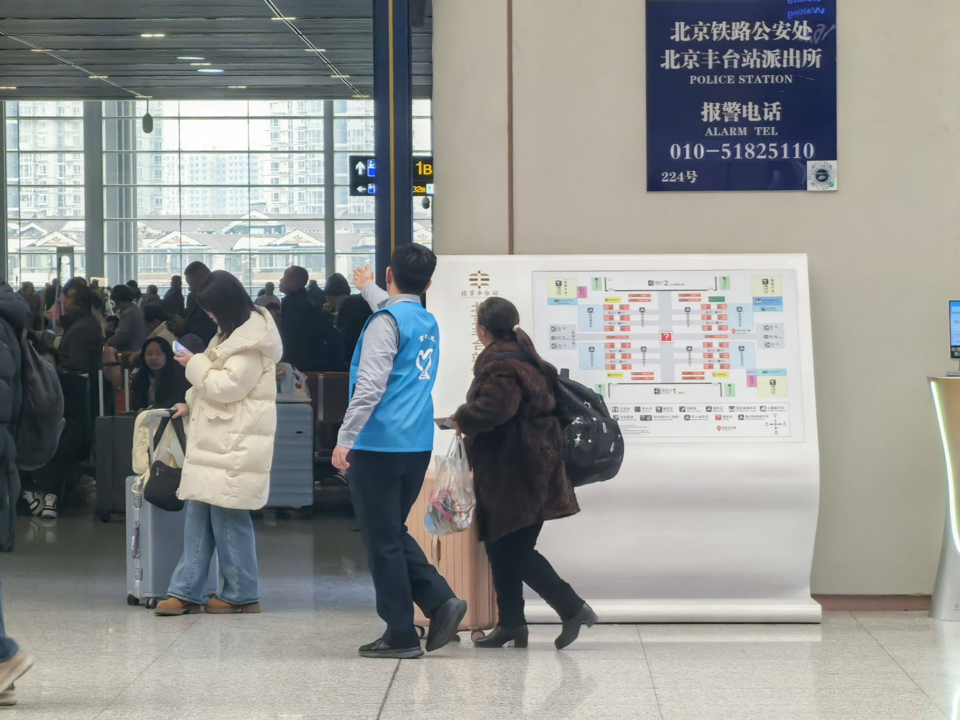 服务保障期间,草莓视频 的志愿者们分布在丰台火车站进出站口、候车大厅、检票区域等重点位置。面对大客流持续、问询需求集中的特点,志愿者们积极配合车站调度,协助维持检票秩序,引导旅客快速通过闸机,并为旅客提供候车室方位、换乘路线等信息咨询服务。通过高效有序的引导分流,有效缓解了重点时段站内人流压力。