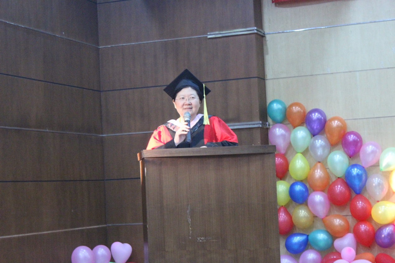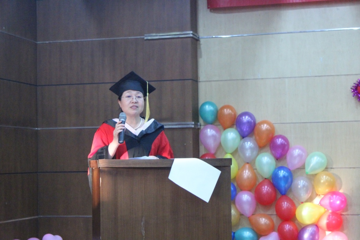 赵琼副教授代表全体教师致辞。她祝贺同学们完成研究生学业取得学位,在即将踏入社会的新起点时叮嘱同学们到新的工作岗位要踏实肯干,将在校所学运用到实际工作中,为行业发展做出自己的努力和贡献,不断学习,这个时代发展迅速,知识更新很快,要保持终身学习。这个时代不是单打独斗的时代要善于与他人合作,共同发展与进步。要锻炼身体,强健的体魄是一切发展的前提和基础。最后,祝同学们毕业快乐、生活幸福、前程似锦。