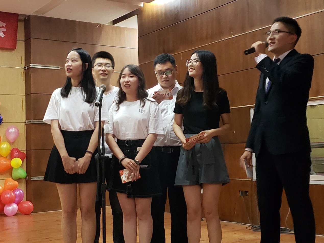 毕业生班级表演结束后,晚会开启翘首以待的第二次抽奖,由学院党委书记刘学伟抽取6个幸运大奖和6名特别贡献奖。