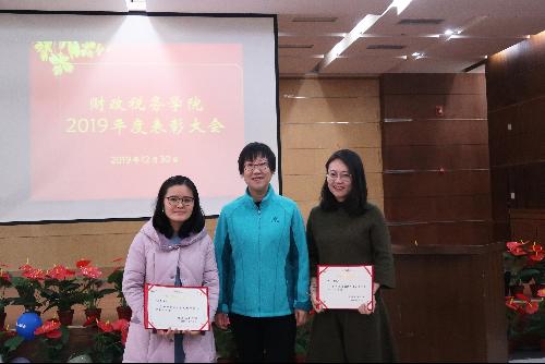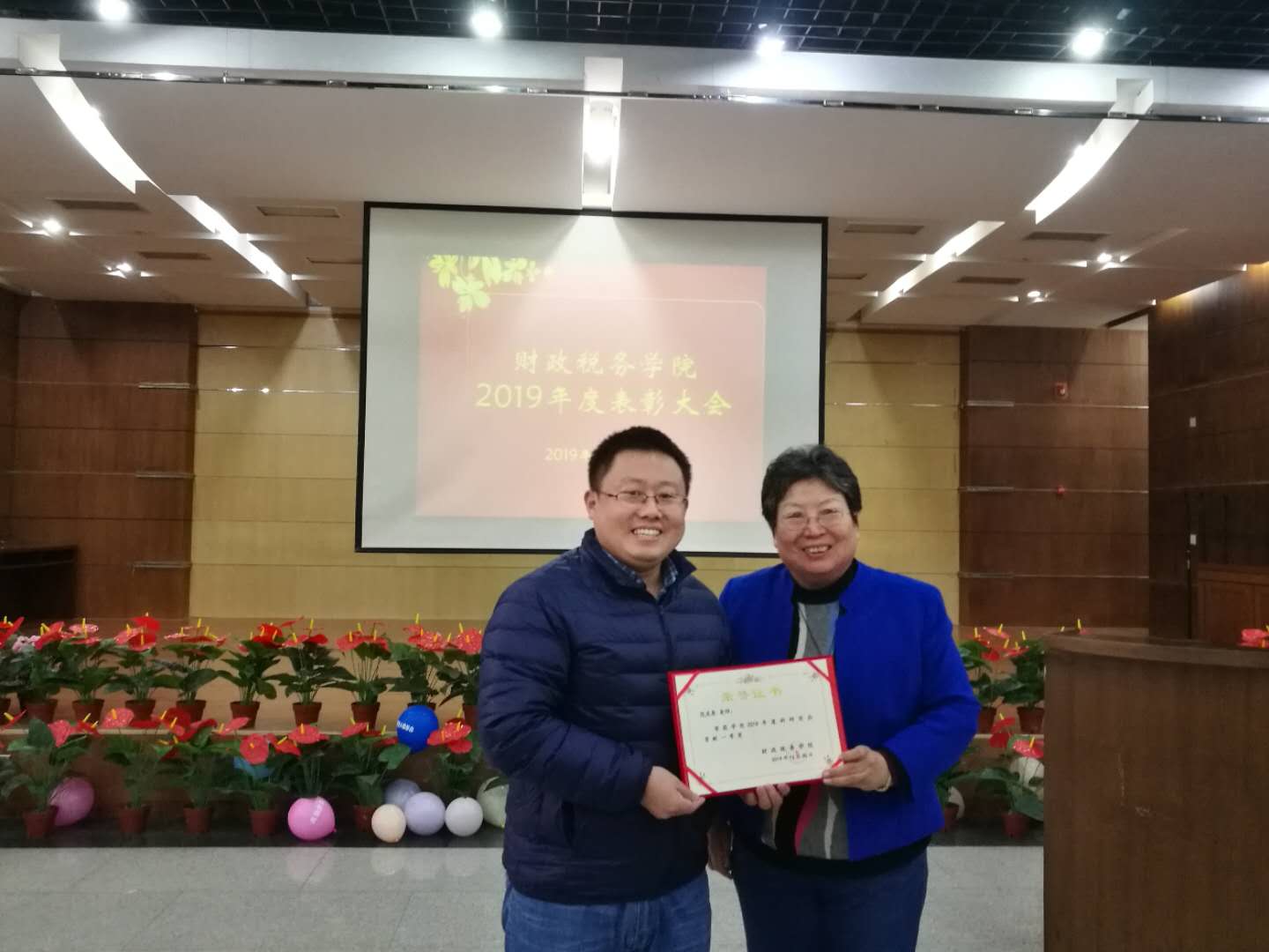 6名教师获“2019年度科研优秀奖”,范庆泉获一等奖,蔡秀云、何辉获二等奖,郝如玉、曹静韬、刘辉获三等奖;分别由丁芸教授,学院副院长王竞达,学院党委副书记刘玉梅颁奖。