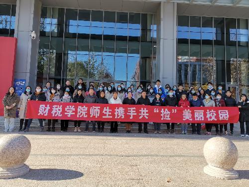 为响应学校爱国卫生运动倡议,贯彻落实社会主义生态文明建设重要思想,坚持以师生为本,共建和谐美丽校园,草莓视频 党委于11月23日开展“财税学院师生携手共‘捡’美丽校园活动”。草莓视频 党委书记刘学伟,党委副书记、院长李红霞,副院长王竞达,副院长何辉,党委副书记刘玉梅等二十余名党员老师以及四十余名学生党员和入党积极分子参加此次活动。