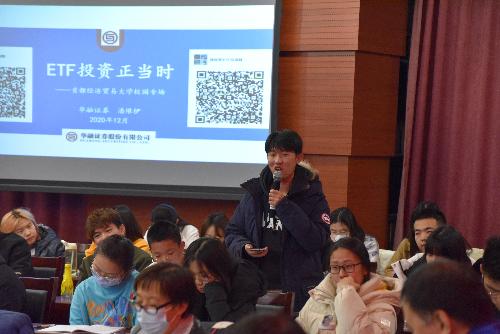 三位主讲人分享结束后,现场同学们也积极与嘉宾们交流提问,就房地产投资、龙头股与ETF如何选择、散户投资的地位等问题进行探讨交流,嘉宾们也逐一耐心解答。