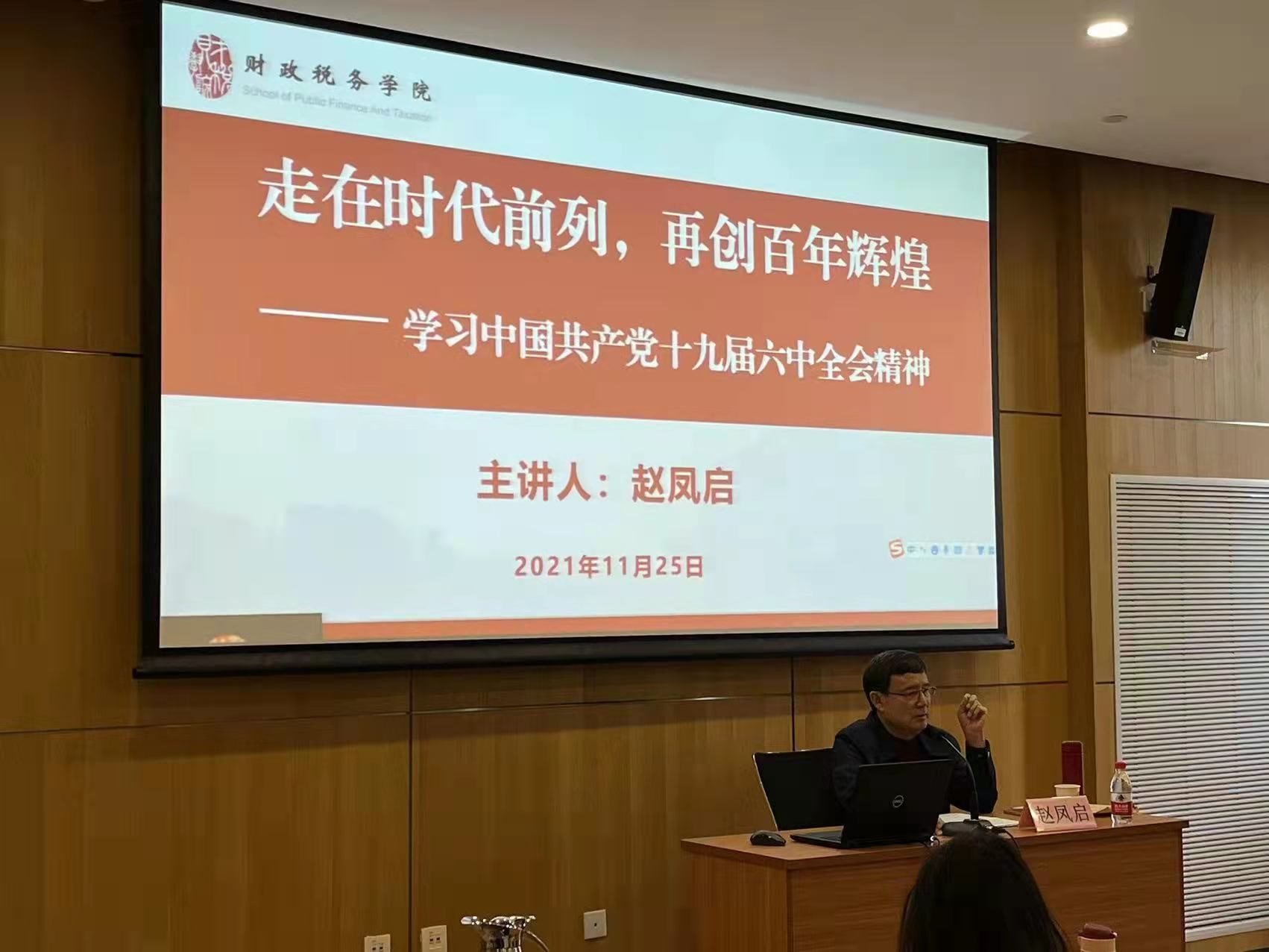 其次,赵凤启讲到在这样一个历史节点召开十九届六中全会无疑是意义非凡的,全会最重要的成果就是《中共中央关于党的百年奋斗重大成就和历史经验的决议》,全面总结党的百年奋斗重大成就和历史经验,深刻揭示了“过去我们为什么能够成功、未来我们怎样才能继续成功”,对于推动全党进一步统一思想、统一意志、统一行动,更加坚定自觉地践行初心使命,在新时代更好坚持和发展中国特色社会主义,具有重大现实意义和深远历史意义。而后,赵凤启老师基于《中共中央关于党的百年奋斗重大成就和历史经验的决议》,梳理了建党百年来中国共产党的各项重要决议——1945年党的六届七中全会通过的《关于若干历史问题的决议》、1981年党的十一届六中全会通过的《关于建国以来党的若干历史问题的决议》,并具体分析各项决议提出的背景和意义。