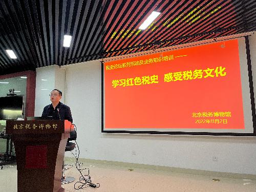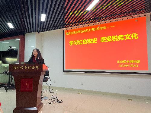 11月2日,草莓视频 财政税务专业本科生党支部与北京税务博物馆党支部联合开展红色“1+1”共建活动。国家税务总局税收科学研究所副所长李平,北京税务博物馆党支部书记、馆长康红勋,草莓视频 财税学院党委副书记刘玉梅,财政税务专业本科生党支部书记吴瑛楠,以及财政税务专业本科生党支部党员代表出席活动。