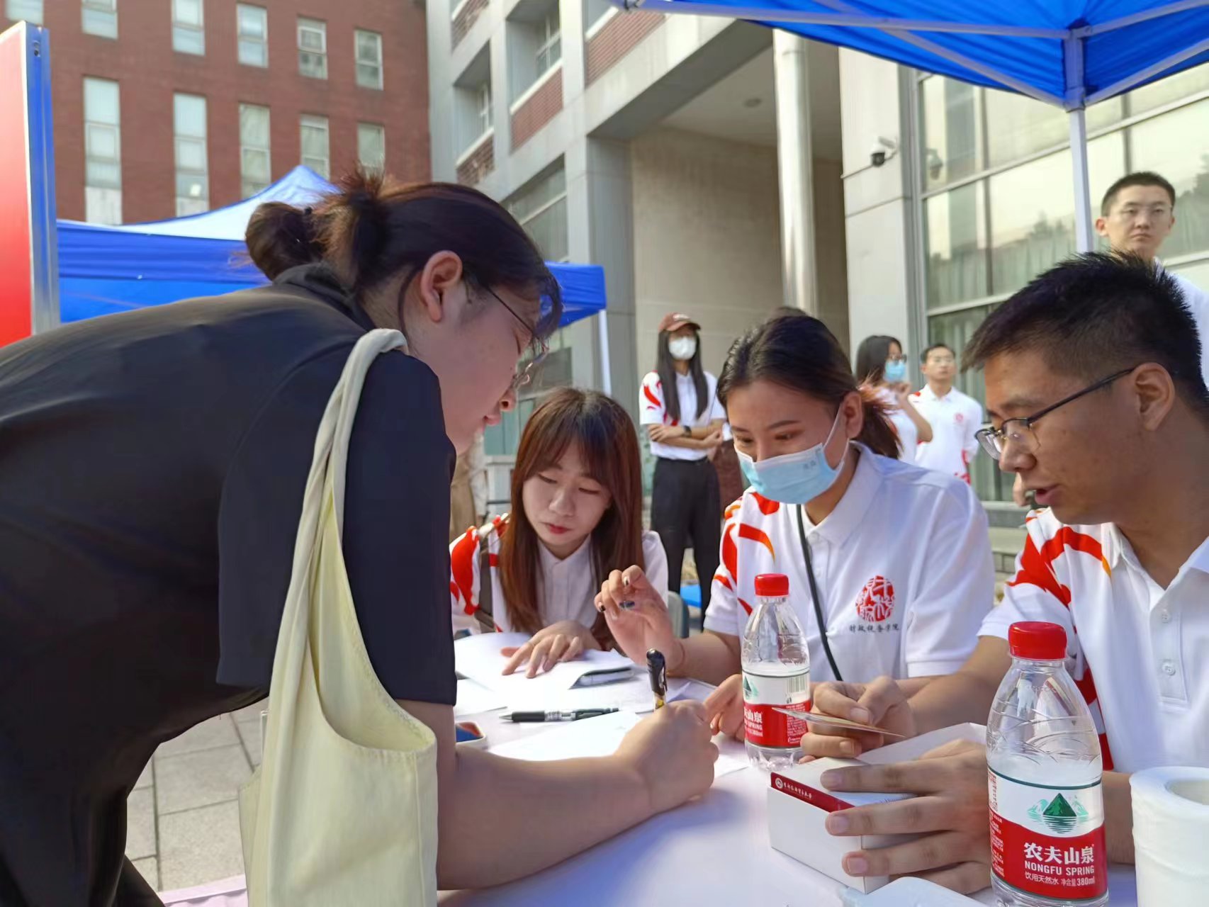 为做好此次迎新工作,学院提前做了大量的准备。早上7时许,学院的领导、老师和志愿者们就已经各就各位,忙碌起来。分团委、学生会、研究生会的同学们早早地来到博学楼门前,布置现场、调试电脑、整理材料、安排志愿者进行点对点引导服务,耐心等待第一位小萌新的到来。