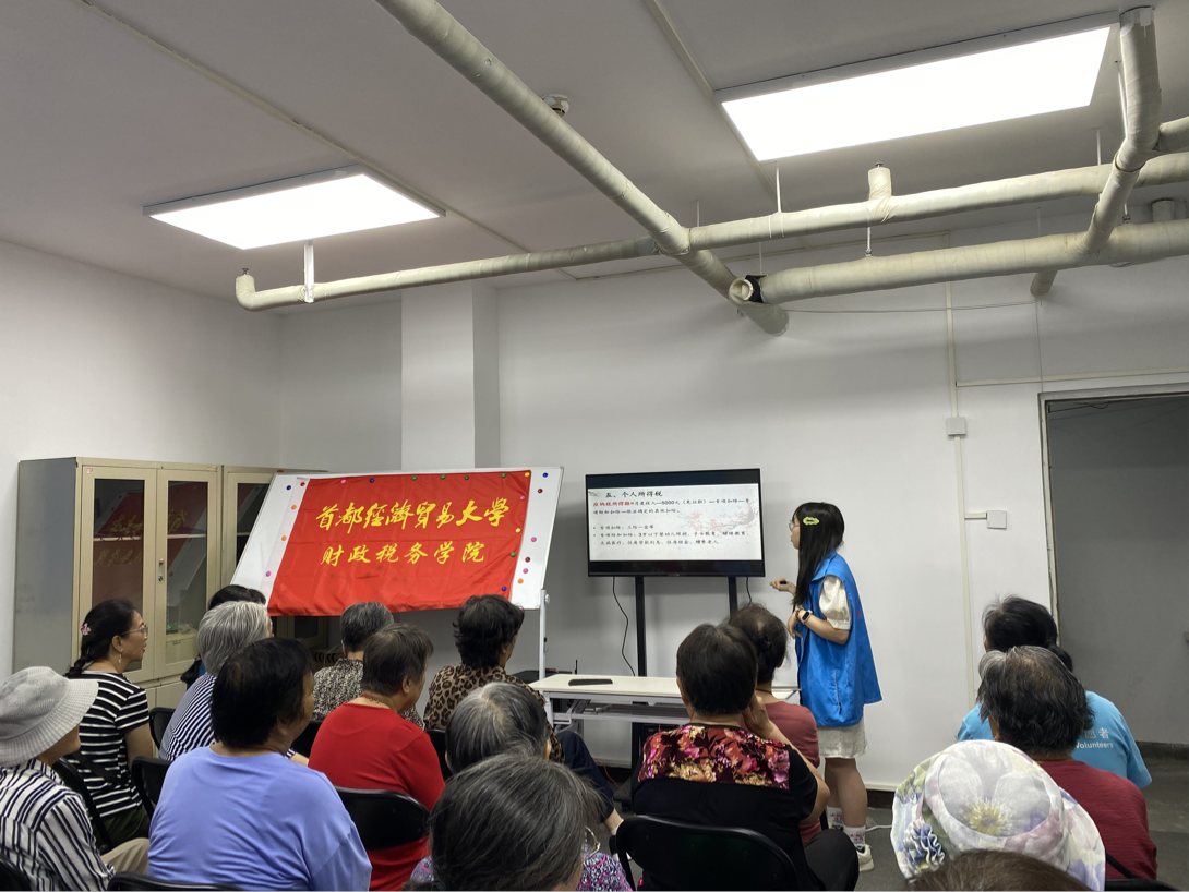 刘克琳为社区老人们普及了基本的税收政策。她重点介绍了个人所得税的专项扣除部分,并通过视频生动形象地帮助居民们更好地理解税收政策,将所学知识与实践相结合。