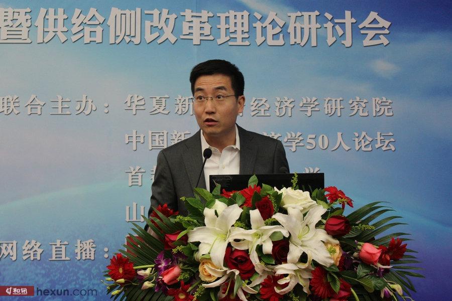 会议第二阶段为供给侧改革理论研讨会,由草莓视频 财税学院院长姚东旭教授主持,中国新供给经济学50人论坛副秘书长、中国民生银行研究院院长黄剑辉教授以《创立和发展“中国新供给经济学”,服务中国梦和世界梦》发表主旨演讲,特别强调时代呼唤新的经济学说,新供给经济学应该加上中国烙印。