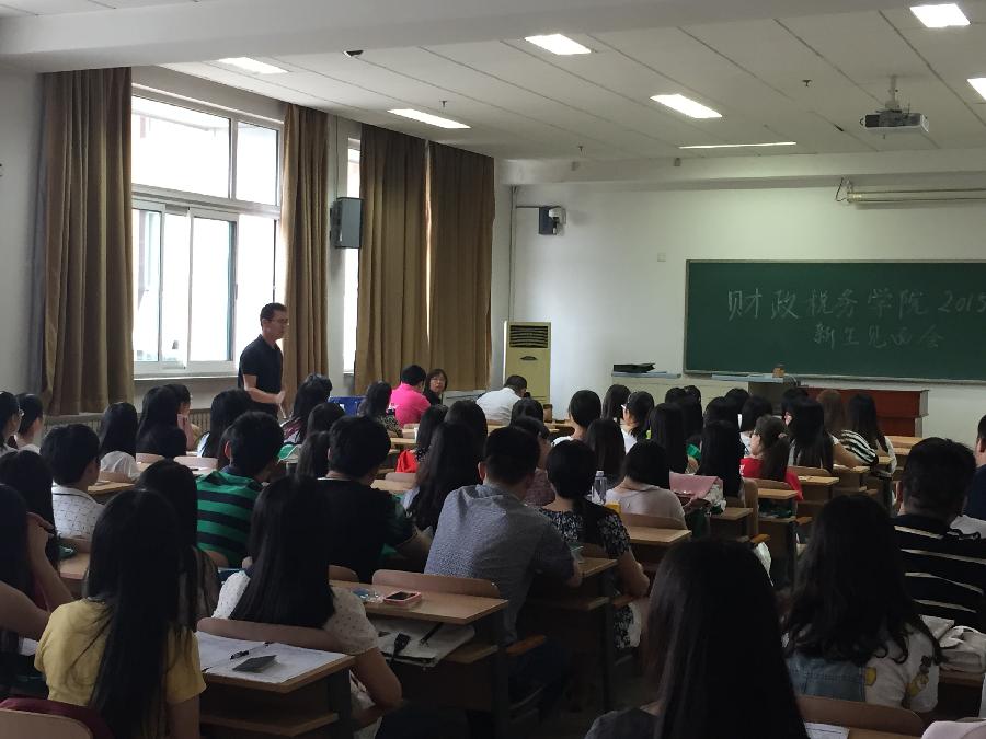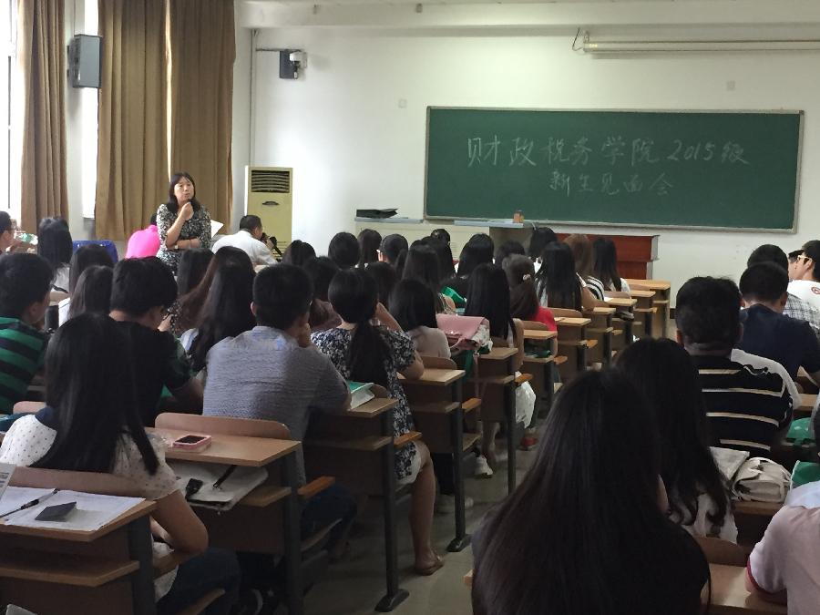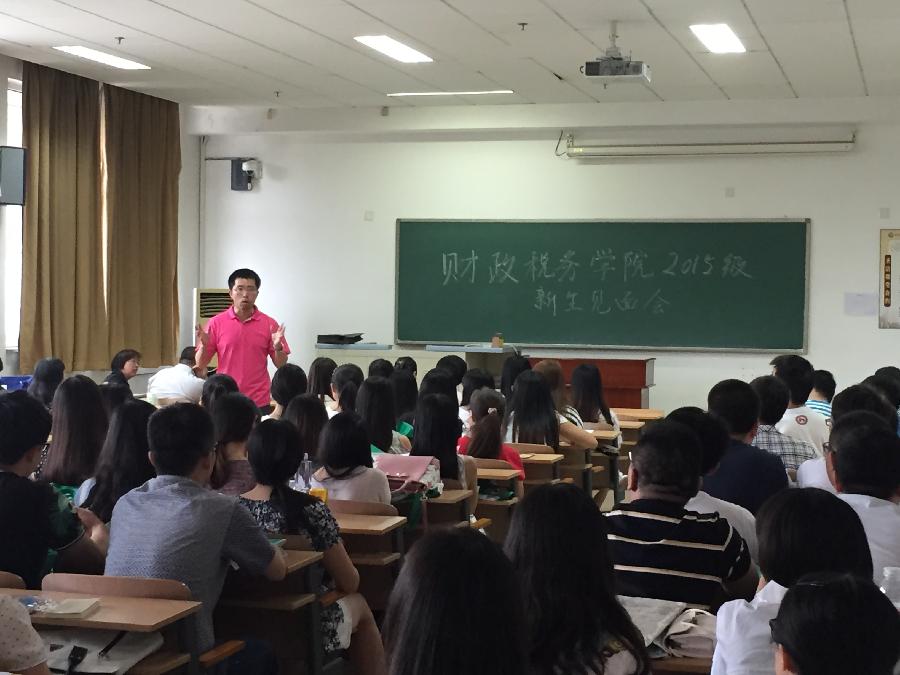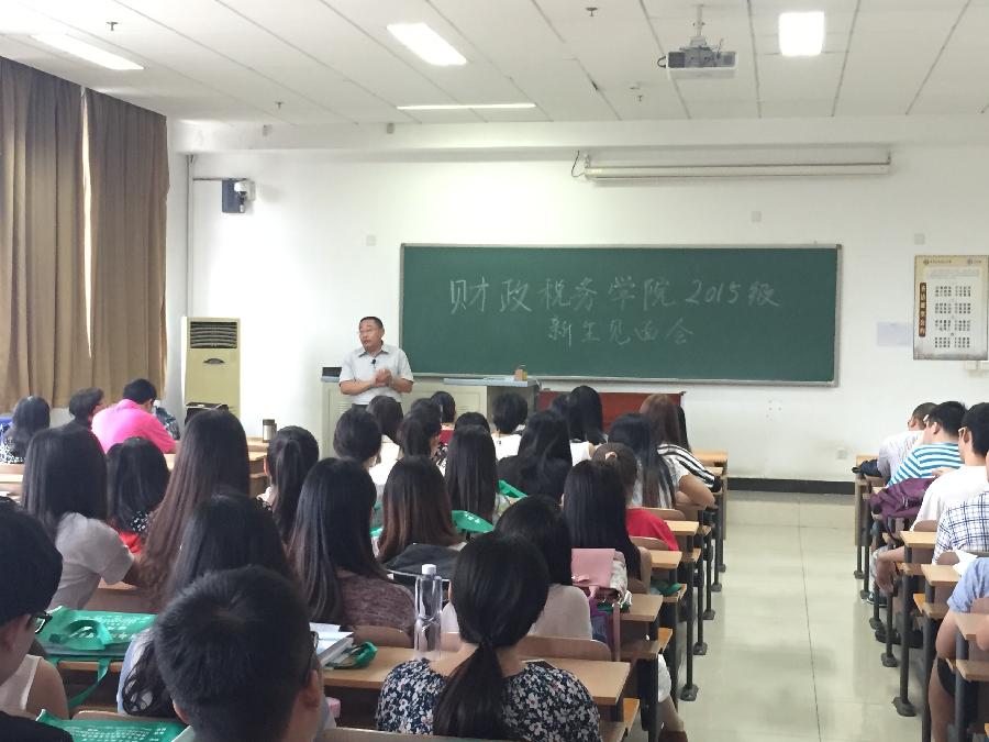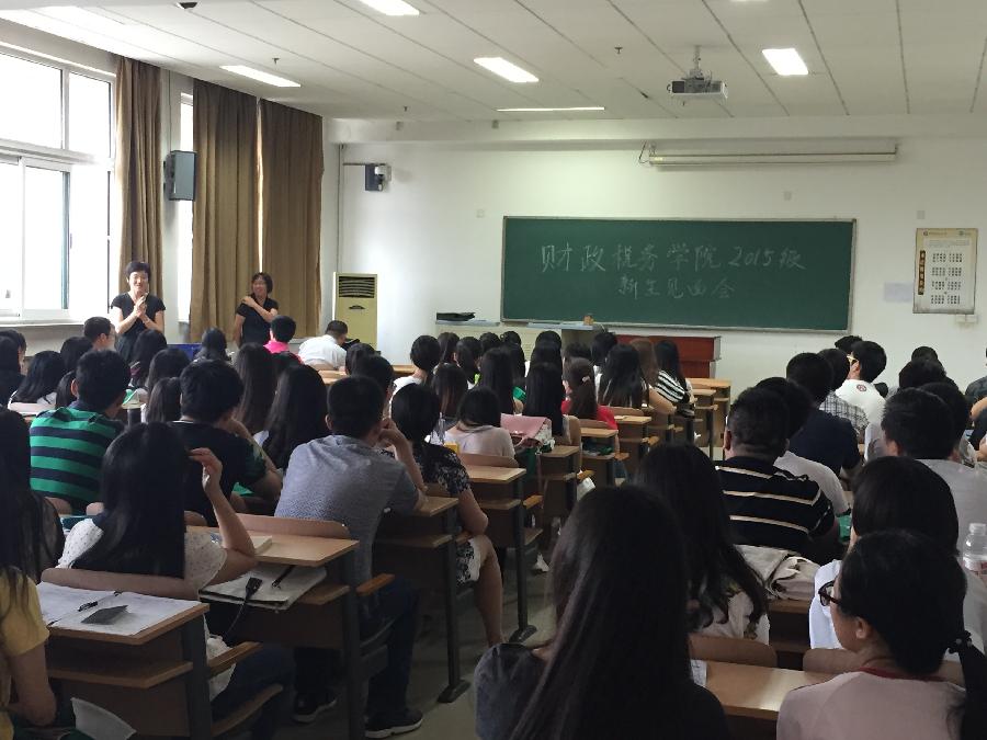 9月8日下午,草莓视频 为2015级硕士研究生举办新生见面会,院长姚东旭、党委书记李红霞、副院长王竞达、副院长何晴、党委副书记王珂、税务系主任何辉、财政系副主任张立彦均到场欢迎80名新生。