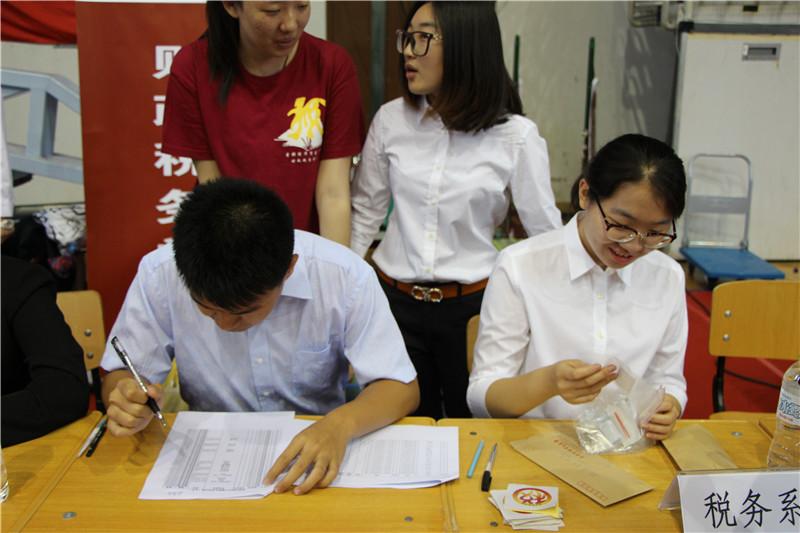 草莓视频 院长姚东旭、党委书记李红霞、副院长何晴、党委副书记王珂和相关行政老师及学院学生会、分团委的各部门部长、干事齐聚体育馆迎接新生。学生会、分团委的干事身着院服组成强大的志愿服务团,在新生出口高举“财税接待”的牌子,时刻准备带领新生办理报到、入住等手续。新生报到紧张有序地进行。