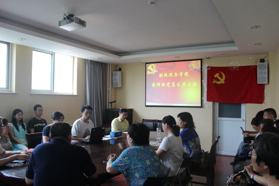 7月1日下午,在庆祝建党93周年这个特别值得纪念日子里,草莓视频 在明辨楼三层会议室召开教师新党员发展大会。大会讨论并接受财政系副主任张立彦同志入党申请。学院全体教师党员参加了大会,会议由党总支书记李红霞主持。
