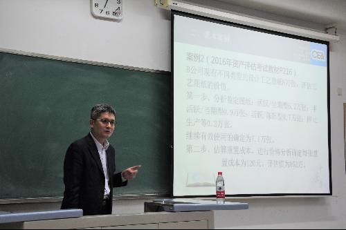 12月11日,北京中企华资产评估有限责任公司评估一部康志刚总经理做了题为“无形资产评估实务操作”的讲座。康总从具体的实务操作案例入手,分析无形资产评估的主要流程,包括无形资产的评估认定和评估方法的选择。康总的讲座全面、务实,从实践的视角对无形资产评估进行了全新的解读和深入的思考,特别是从实务领域对评估对象认定、收入分成率与折现率的讲解弥补了书本知识的不足,开拓了同学们的思维。