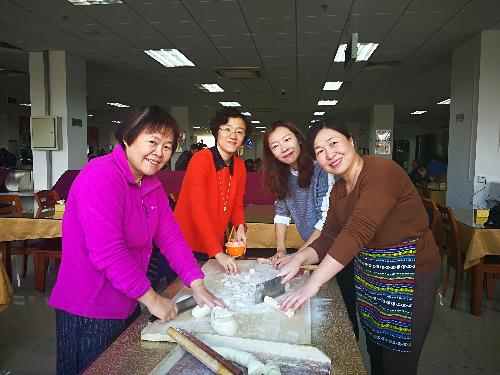 草莓视频 » 草莓视频新闻 财税分工会举办2018年“庆新年包饺子”活动 发布日期:2018-01-08 2018年1月3日中午,为庆祝新年到来,丰富教职工生活,在分工会主席陈蕾、委员吴晖和张晓慧的组织下,财税分工会在教工食堂举办2018年“庆新年包饺子”活动。校工会常务副主席刘俊虹出席活动。全院教职工和退休教师30余名参加活动。 活动开始后,学院院长姚东旭、党委书记李红霞积极带头,老师们三五成群、自由组合,擀皮包陷、配合默契。包好的饺子整齐精美、各具家乡特色。经过一个半小时的努力,热腾腾的饺子出锅了!大家围坐在一起,品尝美味的劳动成果,互送真挚的新年祝福。现场既热闹又开心,可谓其乐融融。