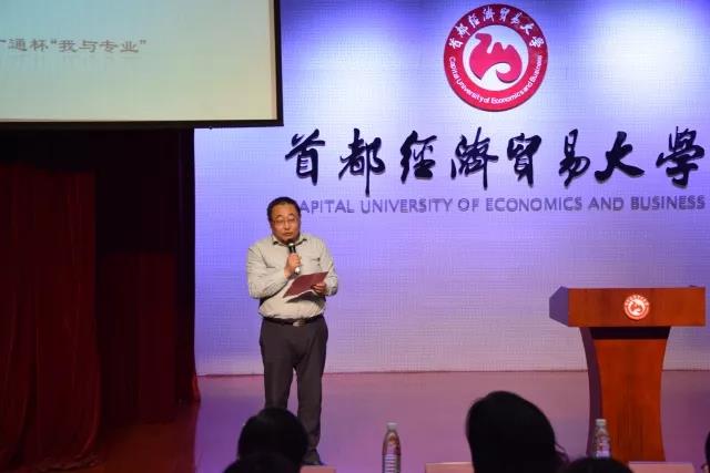 首先,税务学院院长姚东旭教授进行致辞。他首先对鑫税广通税务师事务所有限公司王进董事长,以及鑫税广通公司一直以来对财税学院学生教育和专业发展提供的大力支持与帮助表达了敬意与感谢。一如刚开学时姚东旭院长对新生们说的那样——兴趣是最好的老师,财税学院连续四年举办这样一场认识专业、了解专业的演讲比赛,其意义就在于启发学生对专业的兴趣,以演讲这样不同于传统课堂的方式让同学们培养兴趣,加深对专业的认同度与喜爱程度。