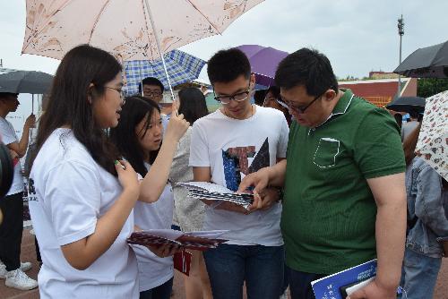 高考后第一天的北京虽然阴雨绵绵,但家长及考生的热情十分积极。在草莓视频 展台,前来咨询的家长和考生接踵而至。各专业系主任根据考生的具体情况,就家长们所关心的录取分数、专业概况、深造机会、专业招生人数、国际交流、工作去向等问题,结合考生的学习情况和招生政策进行详细解答并给出有针对性的建议。为保证咨询效率、效果及回答准确性,我院提前招募了20位学生志愿者作为服务人员,现场帮助解答基础性问题。在此之前,学生志愿者均接受了前期培训,了解学院本年度招生计划和学校招生政策,并熟知学院专业及班级设置情况,对学院特色的培养模式、国际交流、毕业发展、大学生活等相关的问题也都能做到细致解答。家长和考生们一时将草莓视频 展台包围,期待了解三个专业方向更多的信息。
