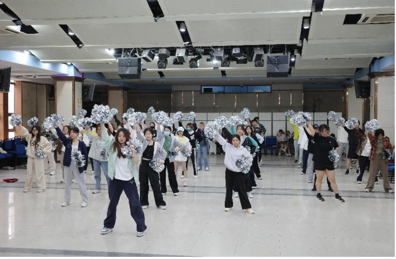 自团体操准备工作开始,上百余名同学利用晚间休息时间,全情投入至紧张而密集的训练当中。大家向各位老师展示了近一个月以来的排练成果。同学们的动作整齐划一,干净利落,洋溢着属于财税青年人的朝气与希望。在音乐声中,同学们手中的扇子飘扬舞动,呈现出极佳的视觉效果。
